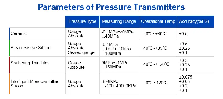 For most industrial uses, diffused silicon pressure transmitters offer the best cost-performance ratio.