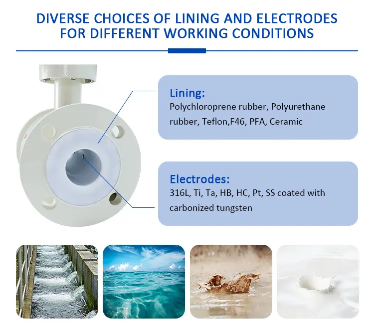 - Consider the installation environment of the electromagnetic flow meter, such as temperature, humidity, and vibration, to ensure that the selected electrode material can adapt to these conditions.